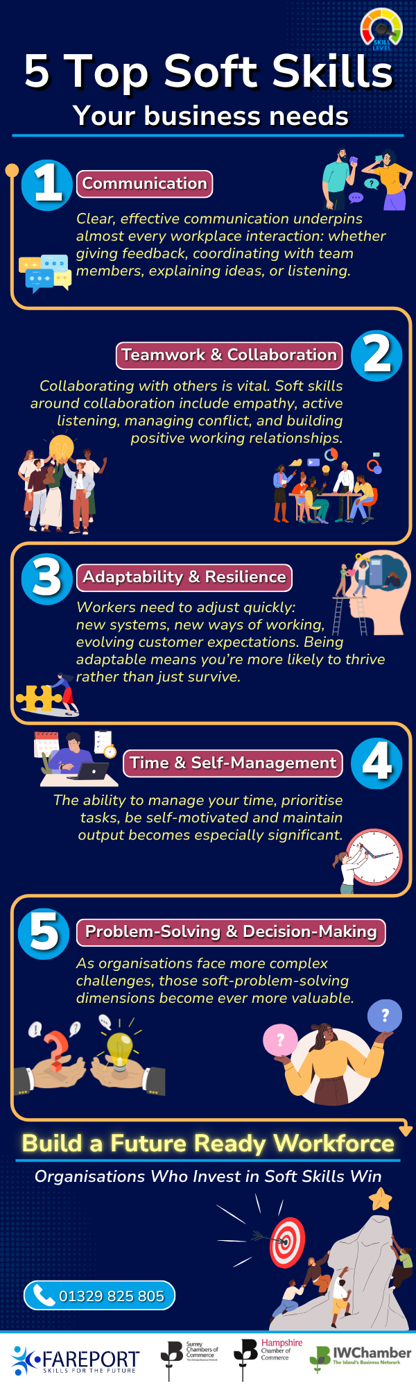 That’s why our work with fellow partners is so timely. We have partnered with the Hampshire, Surrey & Isle of Wight Chambers of Commerce to research how soft skills like communication and teamwork are crucial for tomorrow’s success.